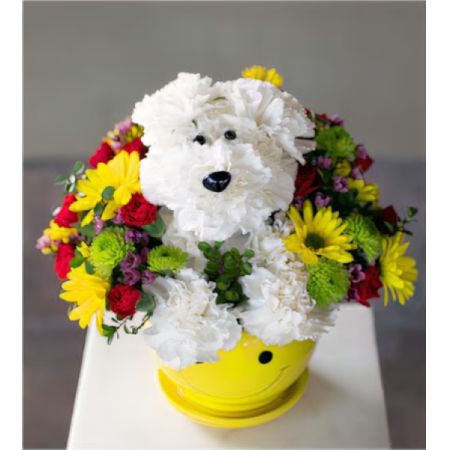 Gifts for dog lovers created by our florists. Dog shaped flowers loved by our customers. Gifts for animal lovers just got cuter... or should we say adogable? Adopt one of our truly original, hand-designed floral pups today and unleash smiles with dog flowers for every occasion - from birthdays to get well to just because!